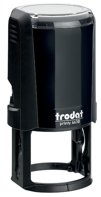 Plastic round self-inking stamp. Size of circular impression: up to D=30 mm. Possible print colors: black, blue, red, green and purple. Replacement pad: 6/46030